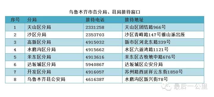 附乌鲁木齐市各分局、县局接待窗口