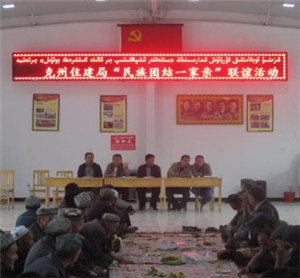 新疆民生网讯 (通讯员 魏军)为进一步贯彻落实好自治区党委、克州州委关于“民族团结一家亲”活动有关部署和要求,让干部与群众之间,群众与群众之间能够更进一步的加深了解,互相帮助解决实际困难,4月13日上午,克州住建局全体在岗干部会同“访惠聚”工作队、新增派驻村工作队共23名结亲干部与73户结亲对象共聚阿克陶镇喀依恰艾日克村群众文化活动中心,共同开展“民族团结一家亲”联谊活动。