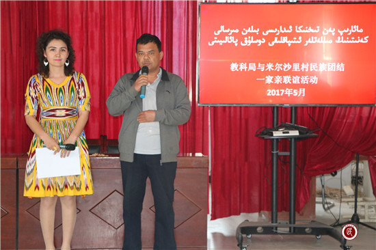 新疆民生网讯 (通讯员 夏振家)为深入开展“民族团结一家亲”活动,发挥好工作队日常纽带作用,实现“民族团结之花常开 兄弟姐妹之谊永驻”,5月4日,经自治区“访惠聚”驻墩阔坦乡米尔沙里村工作队积极协调沟通,尉犁县教科局和米尔沙里村民族团结联谊活动顺利举办。