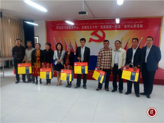 新疆民生网讯 (通讯员 赵新焕)5月12日,阿克苏行政服务中心驻阿克苏市拜什吐格曼乡尤喀克兰干村“访惠聚”工作队连同单位干部职工欢聚在村委会大院,开展了“民族团结一家亲”结对认亲活动,大家欢聚在一起,共唱民族歌、共跳民族舞,增进了“一家人”的情感。