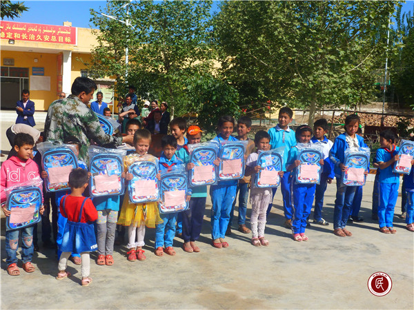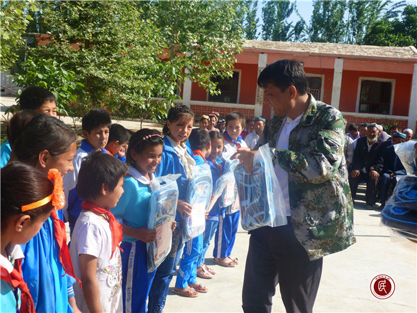 结亲活动中,新疆大学新疆创新管理研究中心的20余名师生还自发组织起来,向村里缺少学习用品的101名学生捐赠了爱心书包和文具,鼓励孩子们努力学习,立志成才,谱写属于自己的灿烂人生。收到爱心书包的热依拉木·努尔艾合买提说:“爱心书包承载着大梦想,今后我们更加努力学习,不辜负新疆大学的叔叔阿姨及父母的期望,努力成为祖国的栋梁之才。”