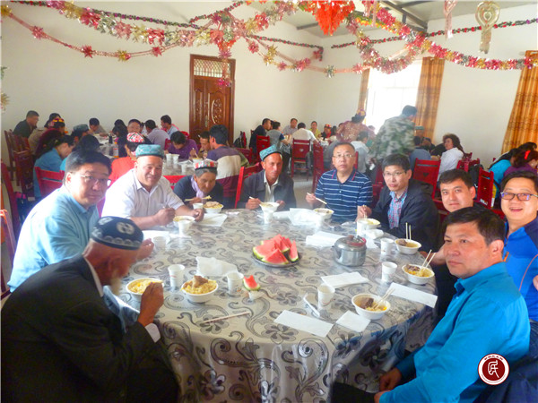 简单的结亲仪式后,结亲队伍们带着米、面、油等礼物去“亲戚”家一一走访,深入了解他们的生产生活状况及所思所想所盼,认真填写“民族团结一家亲”登记表,分析总结结对认亲的目的意义、下一步脱贫想法及思路等。村里的亲戚们也毫不吝啬的拿出自家的核桃、红枣、葡萄干、点心等美食,邀请远道而来的亲人品尝,大家围坐在一起,喝着可口的茶,说着暖心的话,关系在拉家常、讲政策中再次升温。