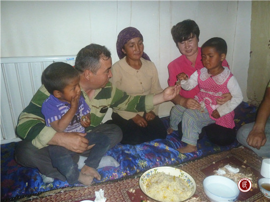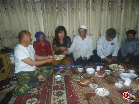 新疆民生网讯 (通讯员 马刚)5月17日,阿克苏市教育局教育局驻喀拉塔勒镇尤喀克博孜其村工作队被邀请到结对认亲的宗教人士家里,同吃友谊饭共话民族情,约20余人了参加此次活动。
