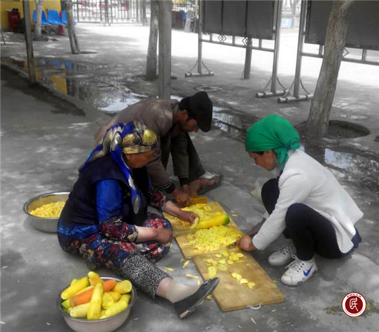 村民们纷纷前来迎接刚刚抵达的乌鲁木齐的“亲戚们”,浓浓思念之情冲淡了旅途的劳累,亲戚间握手拥抱、嘘寒问暖、情真意切,工作上、生活上的事情向彼此诉说,共享团圆的喜悦。大家齐聚村民服务活动中心落坐,吃些干果点心、喝杯茶水饮料、尝块西瓜馕饼,听听亲戚们述说享受党的惠民政策情况,看看村里发生的巨大变化,切身感受到了以习近平同志为核心的党中央对新疆各族干部群众的亲切关怀。大家纷纷拿出手机、相机,与亲戚及家人一同合影留念,用图片记录家里的变化,把喜悦分享给家人,把吾斯塘博依村的变化展示给社会。同时奉上为亲戚们精心准备的礼物。