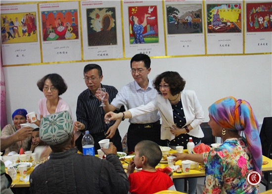 大家表示,要牢固树立“中华民族一家亲”的意识,紧紧聚焦新疆工作总目标,充分凝聚和发挥各民族力量,从日常生活入手,从具体事情做起,切实把习总书记提出的“各民族要相互理解、相互尊重、相互包容、相互欣赏、相互学习、相互帮助,像石榴籽那样紧紧抱在一起。”体现在实际行动中,爱祖国、知党恩、感恩党、听党话、跟党走。通过常态化开展结对认亲活动,让大家欢聚在一起,近距离面对面交流、手握手交心、膝促膝沟通、心连心交融,与老百姓真心交友、真情结亲、真意相助;亲戚间常来常往,从解决亲戚间实际困难做起,真正为他们解难事、办急事、行好事、做实事,以自己的实际行动营造和谐团结、包容理解、水乳交融、密不可分的“大家庭”关系,为实现新疆社会稳定和长治久安总目标贡献自己的力量,以茂盛的民族团结之花迎接党的十九大胜利召开。