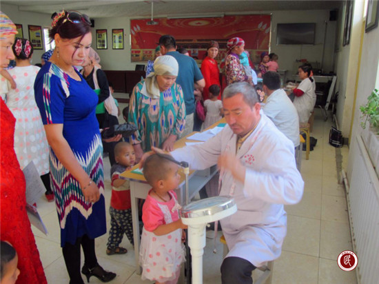 新疆民生网讯(通讯员  房春平、辛乐)“今天,镇卫生院的医生来到村里,给孩子们进行免费体检,听到这个好消息,我们一大早就带孩子来了,体检项目很多,医生检查也很仔细,我们很高兴,党的政策现在越来越好了!”库勒村妇女如仙古丽·阿布都热依木激动地说。