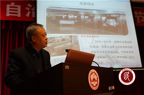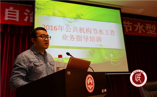 图为乌鲁木齐市节水办特邀专家为与会者讲授《公共机构节水型单位建设工作考核标准》培训课程