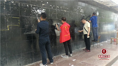 启动仪式结束后,大家立即行动起来,积极开展志愿服务活动。本次活动主要以 “清理城市小广告,打造美丽家园”为主题,结合网格区域划分,以每个社区为一个责任单元,共划分了23个清洁区域。志愿服务人员与联点社区工作人员配合默契,紧密合作。大家有的拿着小铲子铲、有的拿着小刀片刮、有的用手小心的撕掉,有的用湿布擦洗……为了对付这些顽疾,将它们铲除干净,大家用尽了各种办法。虽然白碱滩的天气很炎热,但是大家却干的热火朝天,丝毫不惧烈日的炙烤,时不时还传来爽朗笑声,他们的脚步走遍沿街商铺、主次干道、背街小巷,不放过任何一处地方,各类色彩绚丽的小广告无处藏身,毫不留情地被清除掉。看着清理完后干干净净的墙面,大家纷纷露出开心的笑容。一眼望过去,整个城区在夕阳的映照下,显得格外整洁、明亮、耀眼。