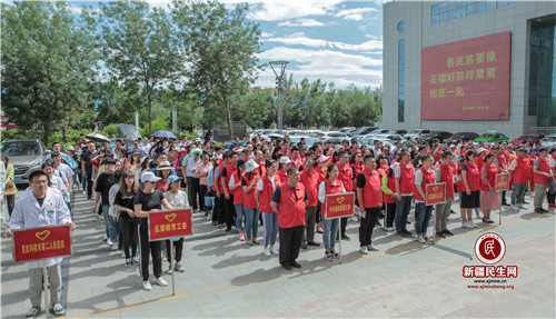 新疆民生网(王燕玲)2019年是新中国成立70周年,也是自治区文明城区复评之年,为顺利蝉联自治区文明城区荣誉称号,传承学雷锋志愿服务精神,形成全民参与创建氛围,6月25日下午,克拉玛依市白碱滩区(克拉玛依高新区)文明办联合区城管委举办了“白碱滩区(克拉玛依高新区)自治区文明城区创建暨志愿服务活动”启动仪式,区属各单位、各部门及企事业共计48家单位三百余人到场,共同见证这一践行友善、弘扬正能量的盛大仪式。