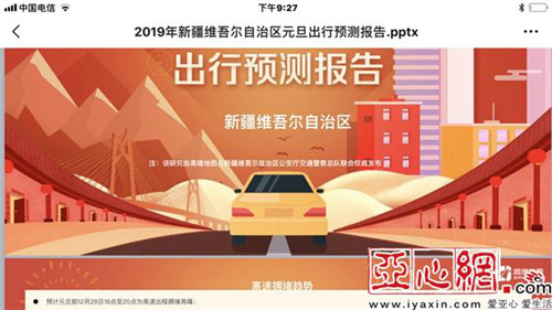 《报告》预计,元旦前12月28日18点至20点为新疆高速出程拥堵高峰;1月1日为返程拥堵高峰,17点至19点拥堵程度较高。