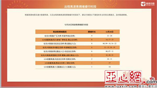 亚心网讯(文/图首席记者于江艳)12月27日,高德地图发布《2019年元旦出行预测报告》(以下简称《报告》),《报告》显示,元旦期间,预计全国高速整体路况较好,不会出现大面积或长时间拥堵。
