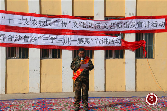 新疆民生网讯(通讯员 陈飞熊)为全力抓好基层群众工作,实现党的群众工作作用发挥全覆盖,成立“十二支农牧民宣传”文化队伍。2月17日下午,克州乌恰县吾合沙鲁乡恰提村开展了农牧民文艺演出及群众宣讲活动。吾合沙鲁乡党员干部、村干部、驻村工作队成员及农牧民群众共计150余人参加此次活动。