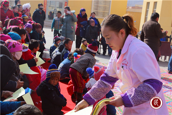 (图为乡卫生院医生为医疗惠民政策发传单)