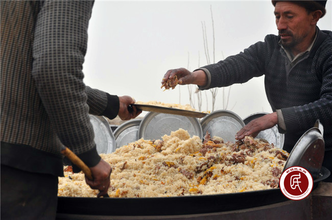 图3 在村班子的组织下,分发抓饭进行得井然有序
