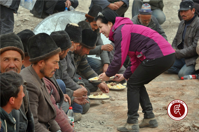 图4 工作组双语干部阿孜古丽亲手为村民递上抓饭