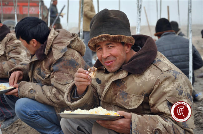 当我们将一份份美味可口的抓饭递给老乡时,老乡们脸上挂满了质朴的笑容,“热合买提”不停地回荡在工作组和村班子的周围。吃着热腾腾的抓饭,村民阿米娜高兴说:“没有党的好政策,没有工作组和村班子的努力,就没有她们全家的幸福生活。”虽然南疆的春天姗姗来迟,寒冷与沙尘依旧,可是党的好政策不会迟到。在工作组和村班子的共同努力下,党的政策“春风”正在温暖着南疆这片土地上百姓的心。