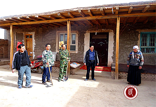 新疆民生网讯,加依铁热克村里的几位贫困户始终让克州人社局住玉麦乡9村工作组的队员们放心不下,3月15日,工作组带着劳动工具和慰问品,再次来到孤寡贫困户阿吉古丽·阿木提家中,鼓励她要坚定生活信心,鼓起勇气克服眼前困难,并帮她清扫羊圈、修剪果树废枝、清理秸杆。
