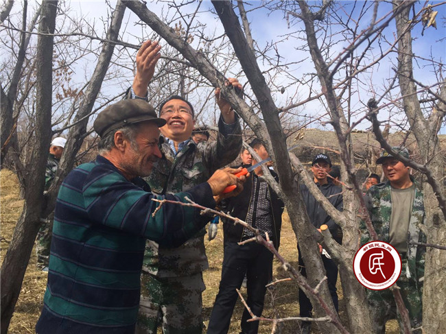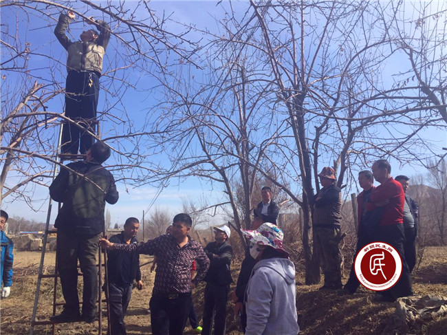 技术人员根据杏树的年龄、树体大小等不同情况分别进行示范讲解,并让村民自己动手修剪,对村民以往错误的修剪方式进行纠正。
