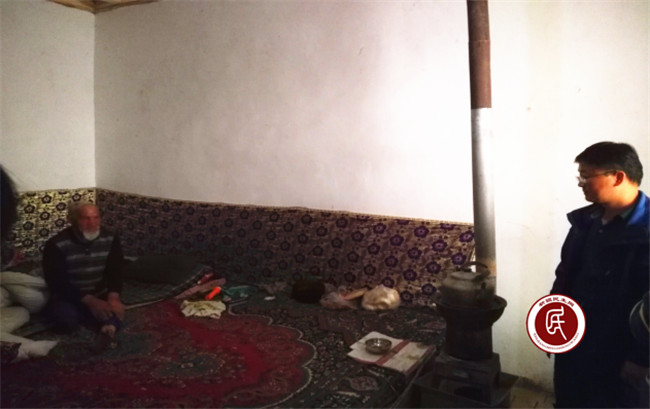工作组走进屋内,见到一位头发斑白、面容消瘦的残疾老人独自一人坐卧在床上,屋里味道很大,老人大腿以下全部截肢,无生活能力,家里大人外出干活,无人照料。老人见到我们很激动,“热合买提、那合也提热合买提……”老人流下了热泪。经询问老人今年68岁,五保户,有两个孩子但都没有跟他,20多年前开自家货车拉货出车祸造成双肢高位截瘫,同年妻子与他办理了离婚,带走了两个孩子,外出做生意并结婚。目前,老人居住在妹妹家,由妹妹照顾。