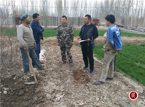 新疆民生网讯3月22日讯 (通讯员 张涛)时下正值春耕备战时节,走进库尔巴格村的田间地头,随处可见农牧民忙碌的身影,有的在给果树松土、有的在给小麦施肥、有的在清理水渠。近日,阿克陶县人社局驻玉麦乡库尔巴格村工作队干部深入田间地头,向农牧民宣讲 “三个讲清”、讲解“三个通告”、讲解法律法规、讲解党的惠民政策,同时开展春耕生产动员宣传,以助农民备战春耕。