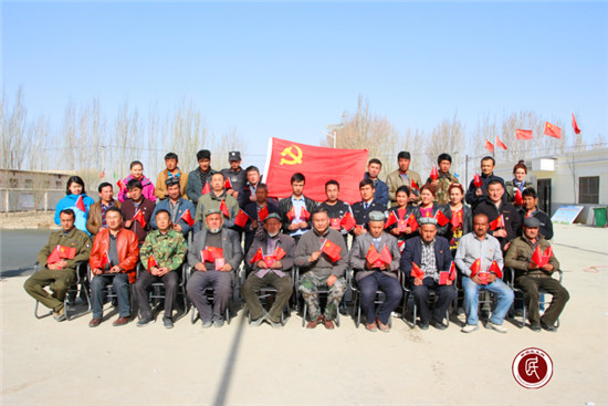 为进一步增强阿克提坎村共产党员的责任意识、自律意识、表率意识和服务意识,充分发挥党员的先锋模范作用作用,驻村工作队组织阿克提坎村31名党员及入党积极分子开展“佩戴党徽、亮明身份”活动,并要求所有党员在参加党内活动和会议时,必须佩戴党徽,在平常生活中也要佩戴党徽,在群众中亮明自己的身份,时时提醒自己,要以自己的言行带动、感化身边的人。学习、遵守《中国共产党章程》,不仅有利于群众监督党员的一言一行,更重要的是能使党员始终不忘身份,提醒自己时时处处起到党员的先锋模范作用,言论行为与党中央保持高度一致。