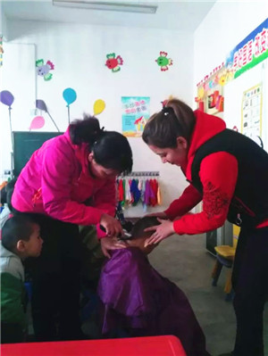 新疆民生网讯 (通讯员 冯君琳)“乖,坐好别动,很快就理完了。”今天拜城县赛里木镇拉帕村幼儿园的孩子们格外乖巧,坐的整整齐齐,眼睛正一眨不眨的看着一位美丽的大姐姐给同学理发,只见这位大姐姐身手娴熟的为一位小朋友一会儿前面用剪刀修修,一会儿后面用推子推推,不到十分钟便理好了一个,又接着为下一个小朋友理发,忙的不亦乐乎。