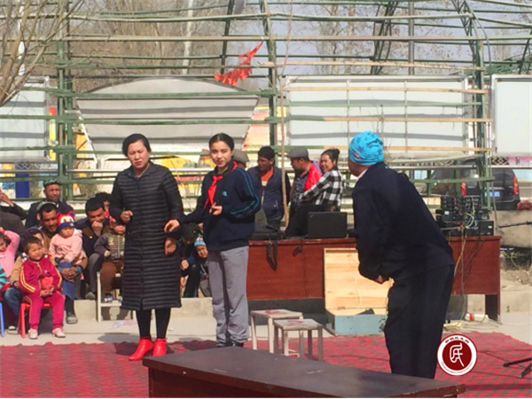 新疆民生网讯 (通讯员 孙亚峰)阿克苏纺织工业城(开发区)管委会2017年“访惠聚”驻村工作队以现代文化为引领,积极组织托普鲁克乡喀什贝希村村民群众开展“去极端化”文艺表演活动。2017年3月21日,工作队队长支俊杰邀请塔里木歌舞团来到喀什贝希村,为全村500多名村民奉献了一场精彩的文艺表演。