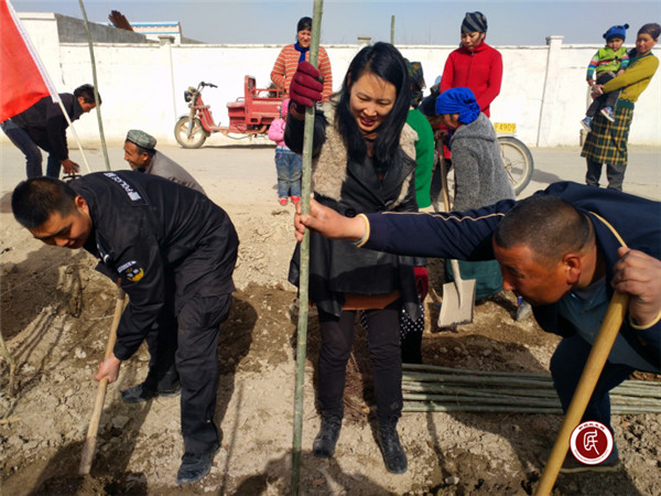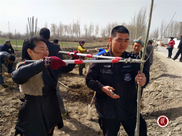 3月21日,阿克苏市教育局驻喀拉塔勒镇阔库拉村工作队同阔库拉的村干部们,还有村里的共青团员们自发组成志愿队将三小队前的四亩地都种上杨树苗。春风里,人们陶醉飘逸,映着初春嫩绿的麦芽,感觉这不是一次劳动,而是一次欢快的派对。村民们也都喜笑颜开,自愿加入植树的队伍。对树苗,剪树枝,你挖坑,我种树,大家忙的不亦乐乎。