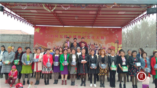 老党员罕柯孜走上舞台,激情满怀地说:“感谢党为我们带来好政策,民族团结、社会稳定我们大家才能过上好日子。”村民们报以雷鸣般的掌声。