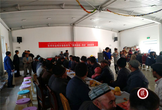 在活动开始前,克州农业局干部各自与自己的亲戚坐在一起,拉家常、嘘寒问暖,其乐融融,进一步增进了了解、加深了感情。文艺活动在维吾尔族姑娘的汉语版《五星红旗》中拉开帷幕。活动有歌舞、有朗诵、有民间艺人表演,更有亲戚间的互动小游戏,同跳一支舞把活动推向了高潮。最后活动在亲戚们同吃一锅饭后圆满结束。