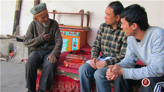 在走访中,托合体·卡迪尔老人向工作队讲述了他年轻时参加村里工作,尤其是在如何组织发动群众、调动村民积极性,如何引导村民自觉参加政治学习,如何将党的政策准确的传递给农民,将党对农民群众的关怀关爱传达给农民等方面的的一些经验、做法。老人说,这些年国家对农村发展投资都很大,农村也出现了翻天覆地的变化,老百姓都过上了好日子,住上了漂亮的新房子,很多农民家里甚至都买上小汽车,这些在他年轻的时候都不敢想,这都是党的好政策带给新疆老百姓的福利,只有我们的党,真心实意为老百姓办事的党,才能做到如此巨大的变化。