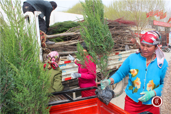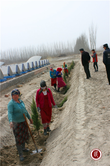 新疆民生网讯 (通讯员 赵春霞)2017年3月25日,阿克苏市园林绿化管理处驻拜什吐格曼乡吉勒尕博依村“访惠聚”工作队以开展“党员先锋日”活动为契机,充分发挥自身擅长绿化、美化、亮化环境的行业优势,联系原单位为所驻村赞助将近1000余棵乔木、花灌木、小灌木等树种苗,用以绿化、美化、亮化大队部的办公环境及村民纪念去世亲人的“马札”周围环境。
