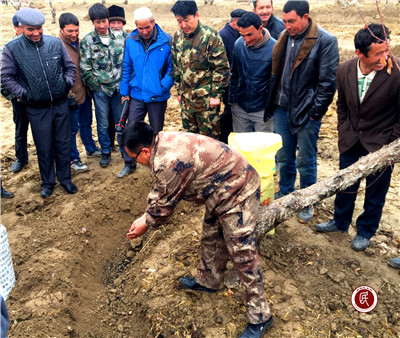 喀什地区食品药品监督管理局驻叶城县宗朗乡阿亚格宗郎(2)村工作队组织村民在田间地头召开春耕生产现场会,邀请了当地种植能手面对面、手把手地教授村民果树追肥和春播技术,千方百计帮助农民群众解决农业生产方面的技术难题,受到群众普遍欢迎。