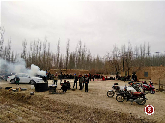 今天是纳吾热孜节,是春雨日,是春耕的开始,是忘却过去的不如意的节日,老克孜勒套村炊烟滚滚。老克孜勒套片区的妇女老少着节日的盛装,架起大锅炖上牛肉,煮起纳吾热孜饭。