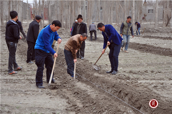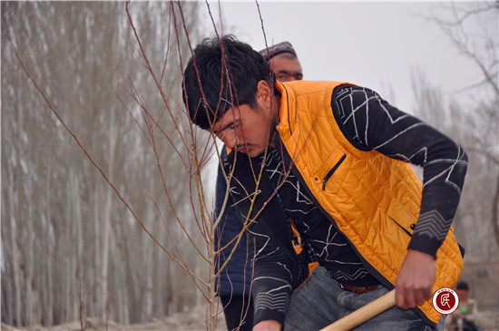 农民们在工作队的带领下,对生活充满信心、干劲十足,14村的农民用辛勤劳作的方式以自己的实际行动表达对工作队的感谢和支持。村民们说道:“工作队给我们带来了最好的果树苗子、最好的农药、最好的技术,要把我们村建设成一个果园子,让我们过上好日子,我们更应该努力配合,工作队亚克西。”