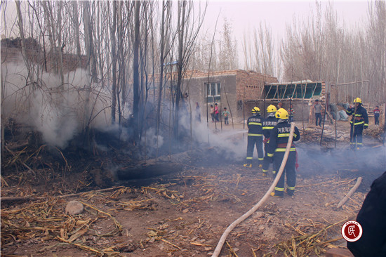 新疆民生网讯 (通讯员 方鑫)3月27日,克州林业局驻皮拉勒乡琼巴什村工作队接到村民求救电话:“工作队的朋友们,快来帮我灭火,不然我的房子要被烧掉了。”接到电话后,工作队立即集合驻村各支力量,迅速前往现场救灾。
