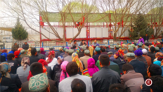 3月27日早上10点整,阿克苏市库木巴什乡阿克艾日克村和往常一样进行每周一的升国旗仪式。仪式结束后,阿克苏市社保局驻阿克艾日克村工作队抓住契机,邀请库木巴什乡阿依古力·马木提主席在村委会大院内对吾布力喀斯木•买吐送发表的《致维吾尔族同胞觉醒书》进行大型宣讲,当天参加宣讲活动的有驻村干部、村干部、支教老师、寺管会干部、村(协)警、村民等近1000余人,每个人都认真聆听着宣讲内容。