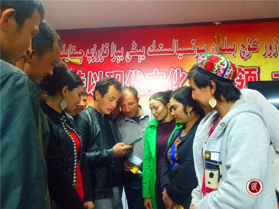 阿克艾日克村抓住升国旗契机向村民宣讲《致维吾尔族同胞觉醒书》