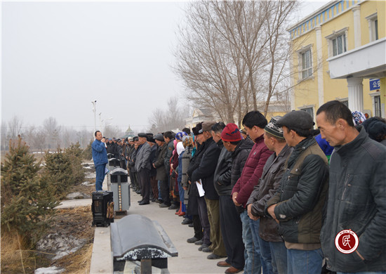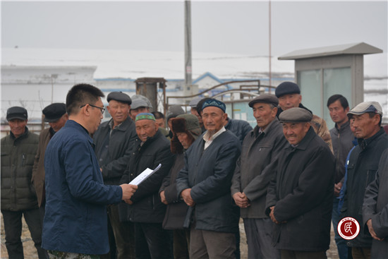 昌吉州城乡规划管理局、奇台县城乡规划管理局驻奇台县吉布库镇达板河牧业村工作队利用周一升国旗对《致维吾尔族同胞觉醒书》进行广泛宣讲。大家认为,我们少数民族要主动发声亮剑,凝聚起维护社会稳定的强大合力,每个人都应该牢记自己的职责使命,要向吾布力喀斯木·买吐送学习,始终旗帜鲜明地与“三股势力”作坚决斗争,全力以赴抓好工作落实,为实现社会稳定和长治久安总目标而团结奋斗。(图1 昌吉州城乡规划管理局、奇台县城乡规划管理局驻奇台县吉布库镇达板河牧业村工作队 马文强)