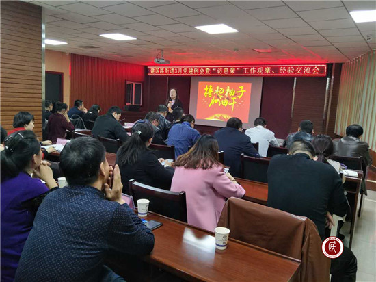 新疆民生网讯 (通讯员 刘振)为扎实推进“访惠聚”工作“1+2+5”任务落实,推广“访惠聚”工作中典型经验,提升“访惠聚”工作队整体工作水平,3月27日,昌吉市建国路街道办事处召开以“不忘初心、展示亮点、互助互促、砥砺前行”为主题的“访惠聚”工作观摩会、经验交流会。昌吉市“访惠聚”驻村工作领导小组办公室街道督导组副组长崔炳华、街道党工委书记、各“访惠聚”工作队长、各社区(村)党支部书记等50余人参加了此次观摩。