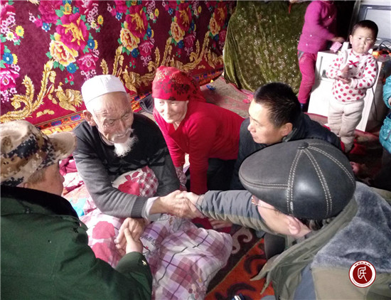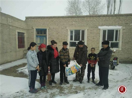 (图为:膘尔托阔依乡萨孜村工作队开展慰问“四老人员”活动)