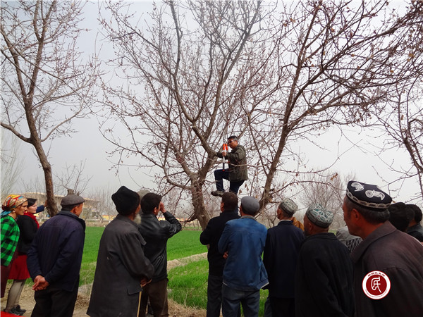 据了解,此次自治区农业科技巡回服务活动是为深入贯彻落实自治区“访民情惠民生聚民心”会议精神,充分发挥农业技术人员优势,抓好技能培训,引导农牧民增强发展意识、提高使用技术和劳动技能,促进农牧民增收致富。根据各村不同的服务需求,几位专家通过通俗易懂的语言对小麦、棉花、玉米、核桃等主要作物和特色林果业需求进行了讲解。为农民现场讲解核桃嫁接、修剪植保及果园管理技术、果树修剪、植保及病虫害防治基本知识。