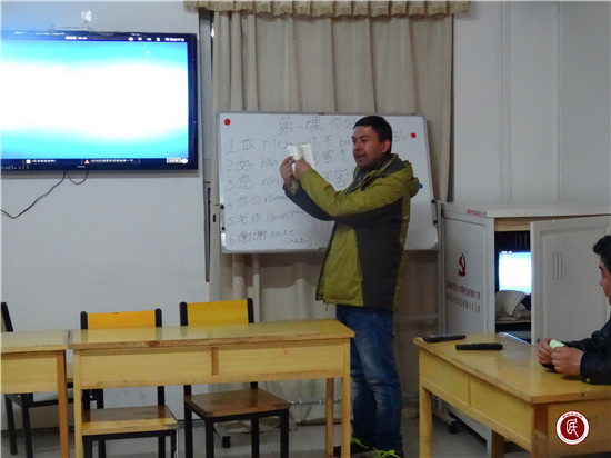 (图为:工作队成员艾力亚尔·米吉提在授课)