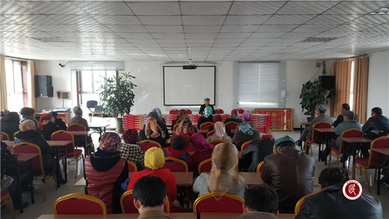 新疆民生网讯 (通讯员 臧巍)2017年3月17日,巴州住建局驻焉耆县阳光社区工作队队员当宣讲员,组织各族群众开展去极端化讲座。