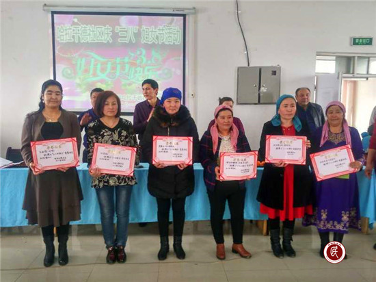 3月7日在社区召集200多名妇女群众举办了一场文艺穿插游戏形式的“三八妇女节”文艺活动,表彰了好媳妇、好婆婆、三八红旗手等14名妇女代表。号召广大妇女同志践行看齐意识,向受表彰的标杆看齐,争做巾帼不让须眉的现代杰出女性。