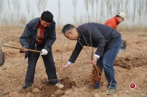 3月28日,驻村工作队像往常一样,吃过早饭就走进田间地头,实地了解村民春耕生产情况。田地里一片忙碌景象,村民们有的正在给果树施肥,有的正在浇春水,有的忙着栽树苗,远处还有几家正在清理焚烧果园里树叶和树枝,冒着几处青烟。工作队员边走边看,不时询问村民春耕进展情况,有没有什么困难。不少村民高兴地对工作队说:“现在不搞‘五统一’了,什么挣钱多我就种什么。有工作队的帮助,今年的贷款早早就下来了,种子肥料都备齐了,我有信心比去年收得多。”