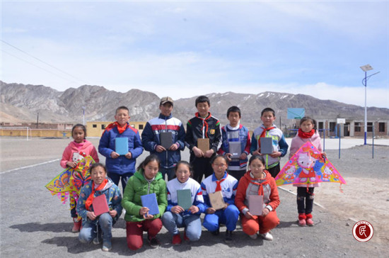 图为驻村工作队和吉根乡小学六年级学生活动合影