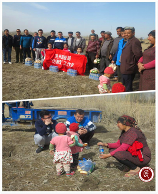 克州路政管理局驻阿克陶县阿克陶镇奥达艾日克村“访惠聚”工作队结合包户入户走访工作,深入田间地头,帮着村民翻耕、平整土地、拉线挖沟、种植树苗,帮助农民顺利开展春耕生产。