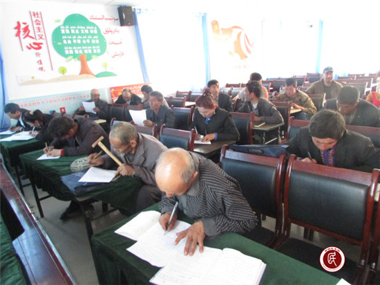 新疆民生网讯 (通讯员 金悦)2017年3月30日下午,拜城县察尔齐镇吾斯塘布依村第一书记吐尔逊江·司马义同志组织驻村工作队全体成员、村委会全体党员干部参加“学讲话、转作风、促落实”专项活动理论考试。对为期一个多月以来开展的“学讲话、转作风、促落实”专项活动的学习情况进行摸底测试。吐尔逊江·司马义同志强调:以学促知,以考促学,要不断强化大家的学习意识,真正达到预期效果,进一步提升全村党员干部的政治理论水平和素养,让“学、转、促”专项活动真正在察尔齐镇吾斯塘布依村落地生根、开花结果。
