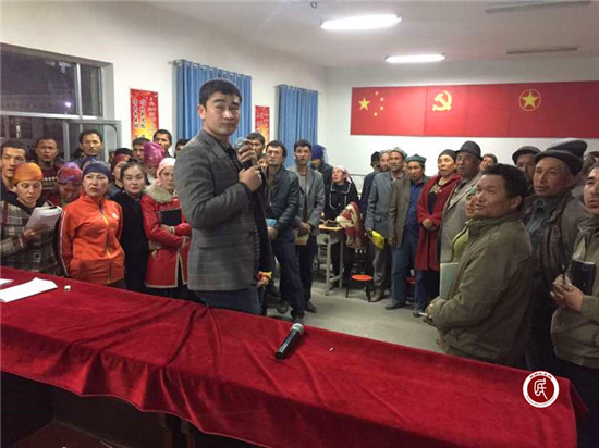 ——驻村干部带头讲。通过召开会议、入户走访、慰问困难群众等多种方式,逐户发放《致维吾尔族同胞觉醒书》,逐家宣传优秀共产党员、民族团结进步模范吾布力喀斯木·买吐送同志先进事迹,在全村掀起维护社会稳定和长治久安大学习、大讨论热潮。